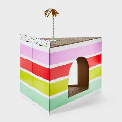 Celebrate your feline friend’s birthday by gifting them this Birthday Slice Novelty Cat Scratcher from Boots & Barkley™. Designed as a colorful birthday cake slice, it features two openings for your cat to climb inside and enjoy the scratchable floor. Also designed with a scratchable roof with a gold tinsel toy on a spring, it’s a fun way to keep them happily entertained and their claws under control.