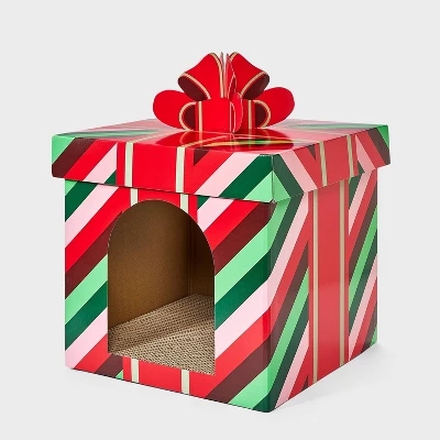 Give your feline friend an entertaining way to work their claws with this Present-Shaped Cat Scratcher from Boots & Barkley™. Made from paper with a scratchable floor, this present-shaped pad satisfies their natural scratching instincts to help protect your furniture. Designed in a present shape with colorful stripes and a bow accent on the top, this cat scratcher adds festive fun to their play time and also doubles as a comfy spot for a quick nap.